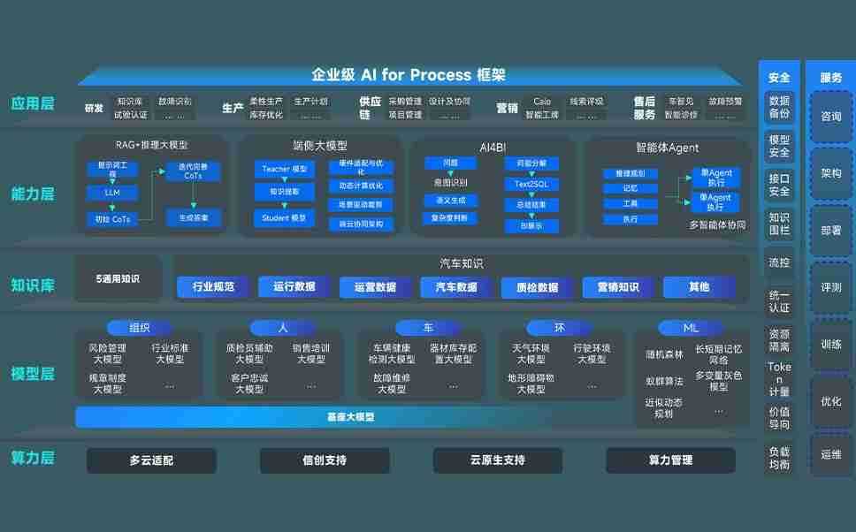yh533388银河问学智车解决方案是一套基于AI技术的汽车行业智能化系统,,,,覆盖从底层算力到顶层AI应用的全栈方案。。方案由算力层、、、模型层和应用层组成:算力层,,,方案支持多种一体机配置,,,具备云端灵活部署、、、、多云适配以及动态优化计算资源的能力;模型层,,,yh533388银河问学平台版提供了企业级AI应用一站式构建与管理平台,,支持基于后训练强化技术的汽车企业专属模型的训练、、评测和运营;应用层,,,,yh533388银河问学DeepSeek版提供包括超级员工、、、智能招采、、智能营销、、智能客服、、、、AI for BI等一系列解决方案,,,可助力汽车行业实现数字化转型,,,,让管理更智能、、、响应更敏捷。。